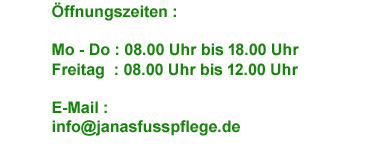 Fußbehandlung unter hygienischen Bedingungen noch viele weitere Leistungen und vernünftige Preise.
